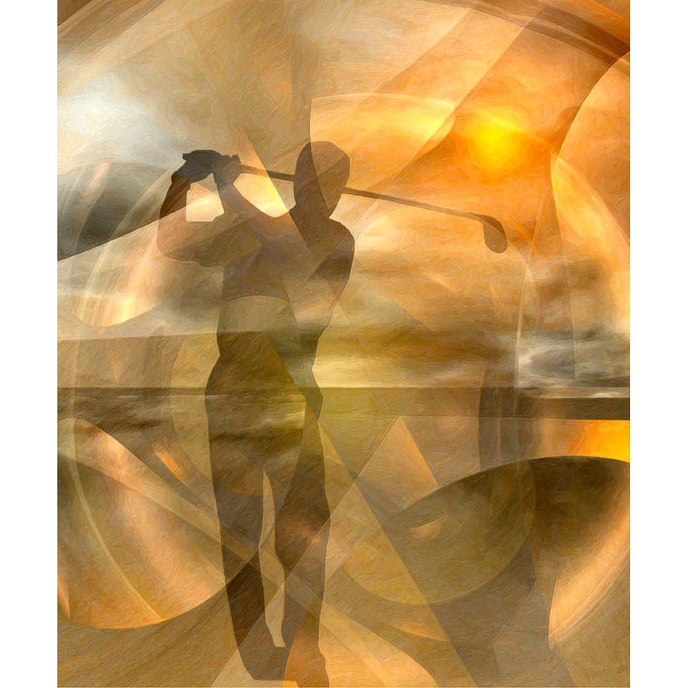 Inspired by the sport and its active lifestyle, this artwork celebrates an outdoor lover. The golfer is about to strike the green, hold that check swing and make that perfect shot of landing the ball in a hole. The warm tones of yellow and orange creates an energetic feel for our golfer who seems ready for any weather and plays in his element.