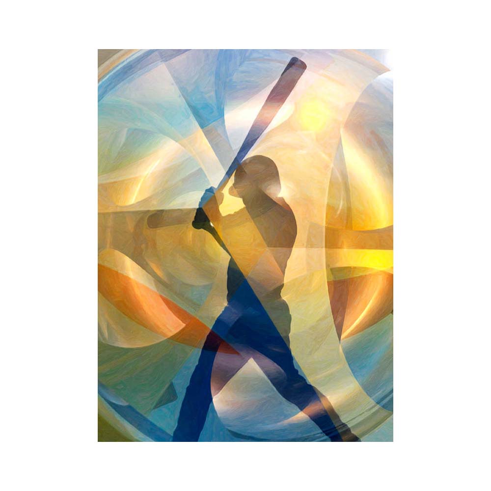With the power stance and eyes up, it's only a matter of time before this baseball player is getting ready to become part of history. This limited edition artwork features a background with earthy tones and a yellow sun making this piece captivating and perfect for any baseball fan.